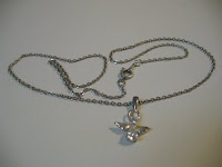 Staple #9: A cheap angel necklace. Also, I'm tossing in a fine 15" chain necklace I found (oddly, the same day I found the necklace I added to Staple #1). I had to fix the broken clasp. The chain is oddly heavy, maybe white gold. I'll have to get it checked out.